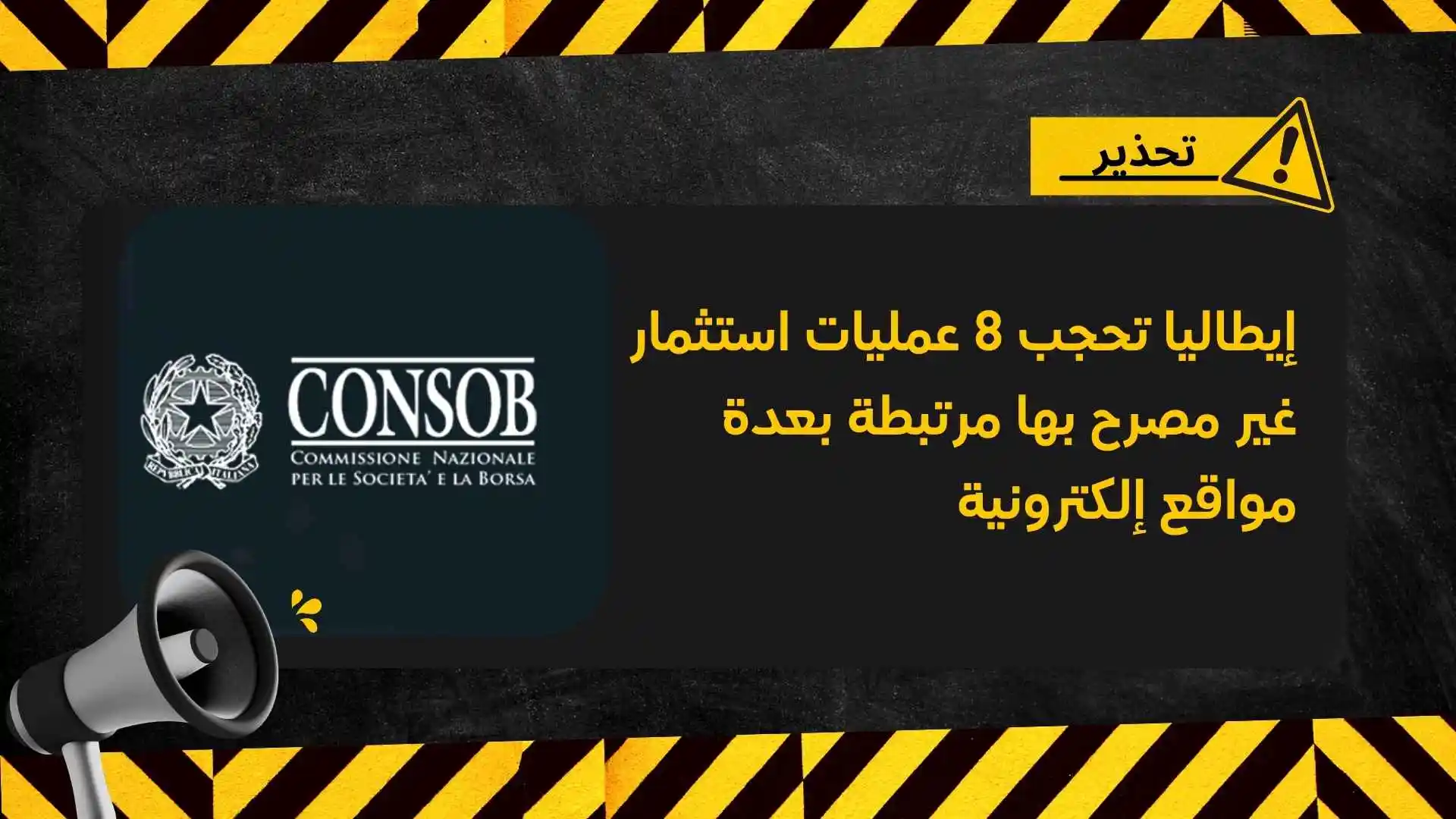 حجب 8 عمليات استثمار في إيطاليا بعد رصد عدة مواقع وبوابات دخول تقدم خدمات مالية دون تصريح قانوني.