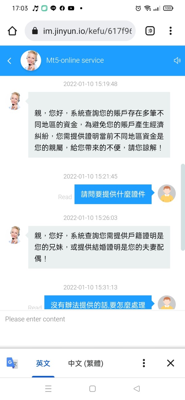 說什麼要我提供證件,他才要出金