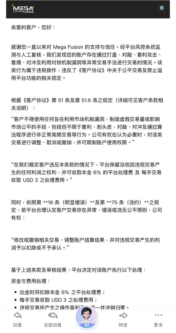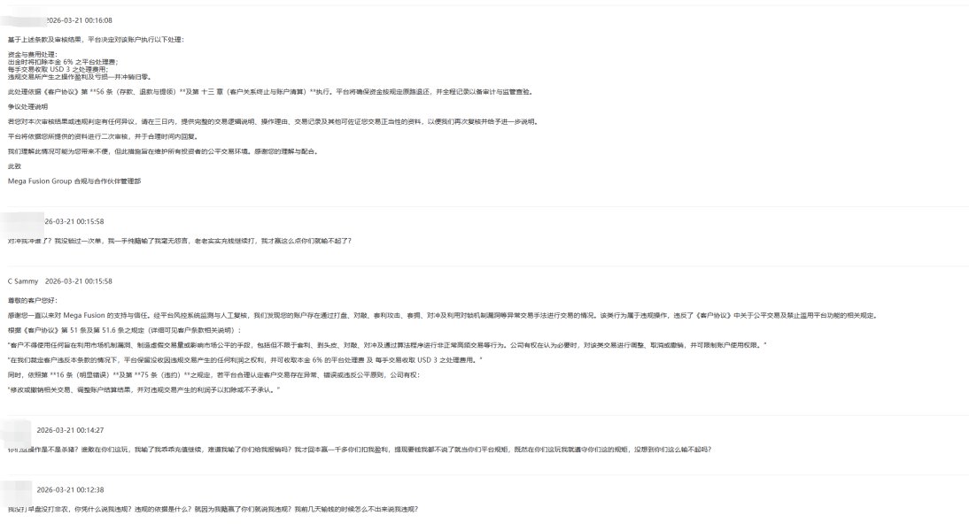 本人在该平台开设账户进行黄金交易,全程自主手动操作,无EA、无刷单、无套利、无违规对敲,交易记录完整可查。交易5天,前2天亏损、后3天盈利,均为正常市场盈亏。 本人提交正常出金申请后,平台未提前告知、未出具任何违规认定文件,直接以“出金”为名义,将账户内全部正常本金➕盈利恶意划扣扣除,两千多美金仅给我保留123美金本金,严重侵犯本人合法财产权益。 随后平台以“需提供交易逻辑、操作理由”等不合理要求刁难,发工单过去就是机器人回复,故意设置出金障碍,典型只许用户亏损、不许用户盈利的黑平台杀猪盘行为。 平台无任何合法依据扣除盈利,属于恶意侵吞客户资产,严重违规违法。恳请外汇天眼曝光警示,协助维权,要求平台立即返还被非法划扣的全部盈利,并正常处理出金!