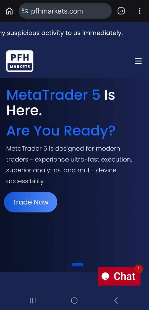 PFH Marketsは、外国為替(Forex)、差金決済(CFD)、商品取引に特化したオンライン取引プラットフォームです。このプラットフォームは、Forex、金属、指数、暗号通貨など2,000以上の取引商品をカバーするためにMetaTrader 5(MT5)をコア取引ツールとして使用しています。