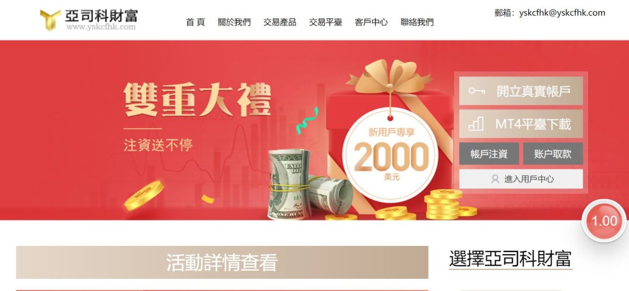 申请出金后 关闭帐户及交易平台帐户申请出金后,将操作MT4平台帐户关闭及入金相关帐户删除无法登入,过程由人员代为操作赚取金额后,诱使受骗者赠加入金.诈骗网站 无法出金. 已更換平台名稱 亚司科财富 https://www.yskcfhk.com/