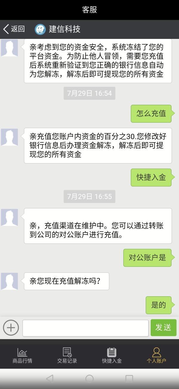 該用戶未證明是建信期貨的交易者